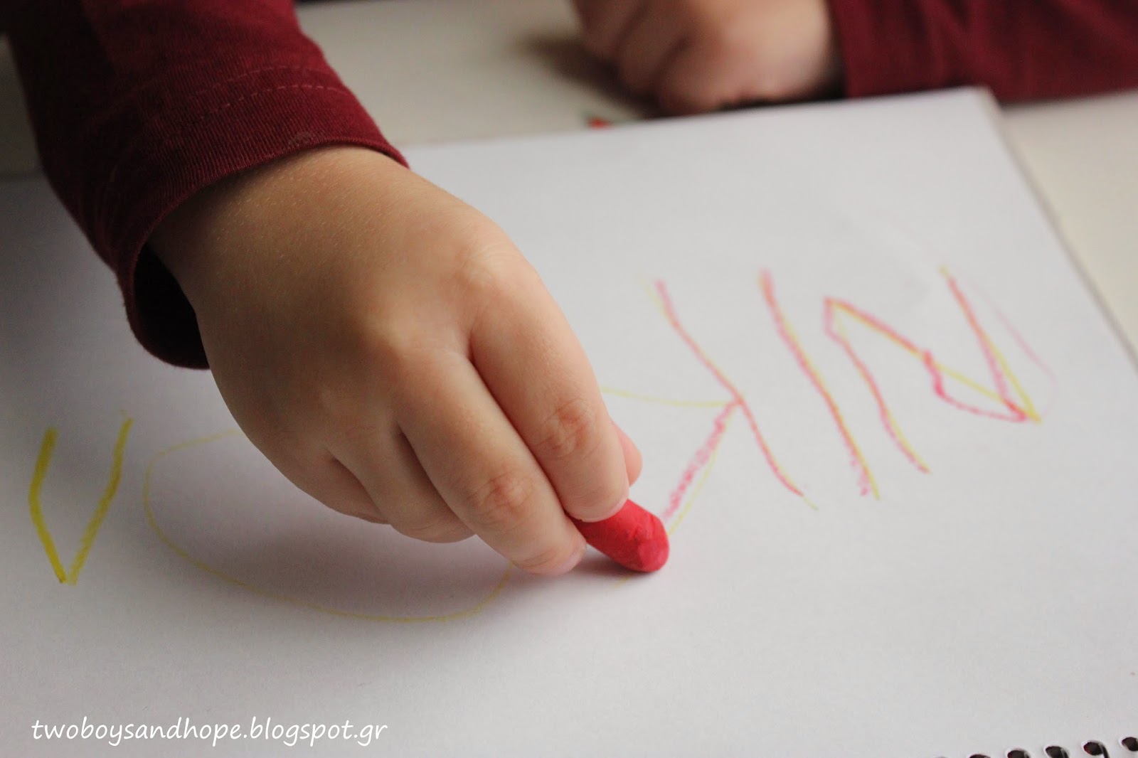Με χρωματιστές κηρομπογιές ή ξυλομπογιές.. το πιτσιρικι μας γράφει το όνομά του..