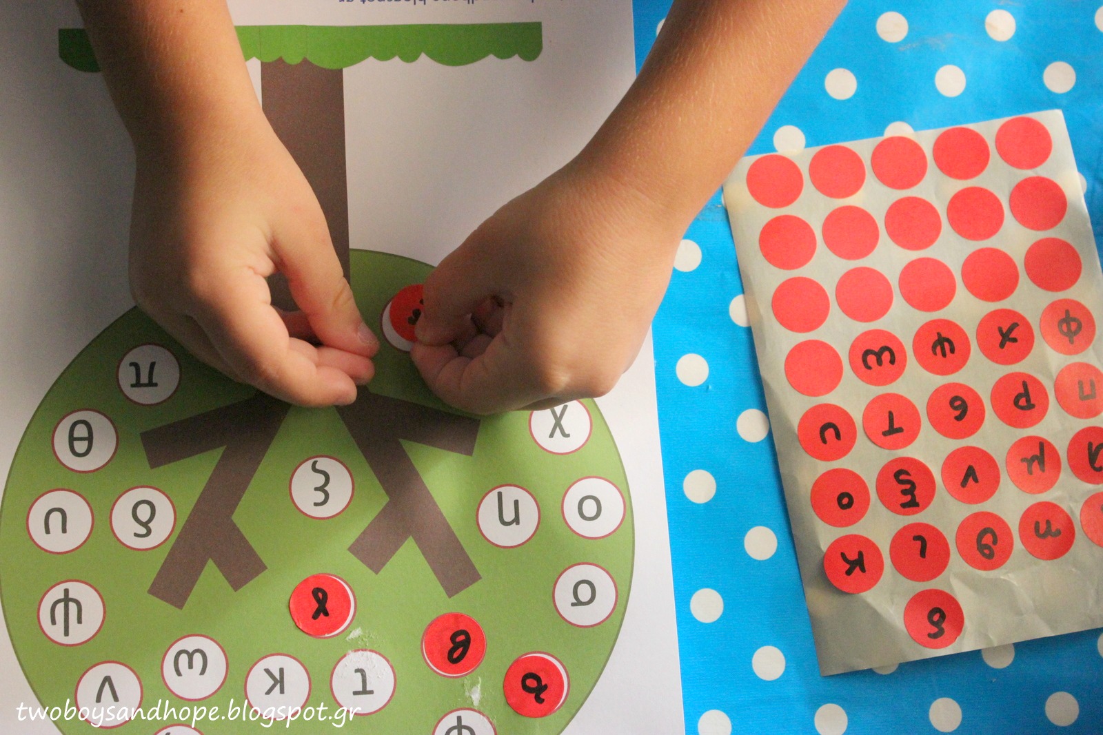 Το εκπαιδευτικό;; Τα αυτοκόλλητα έχουν πάνω τα γράμματα της αλφαβήτου… Το ίδιο και οι θέσεις τους πάω στο δέντρο..