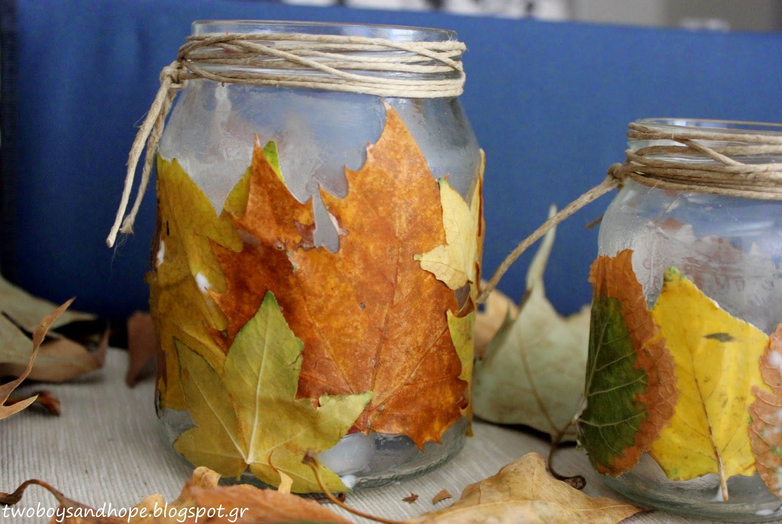 Φτιαγμένα με γυάλινα βάζα και φθινοπωρινά φύλλα..