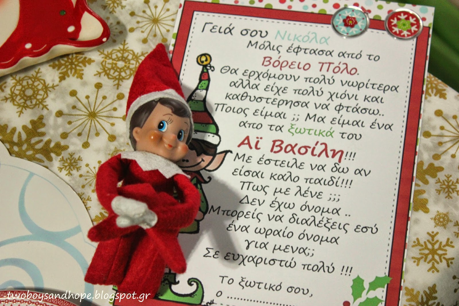 Όπως και να ‘χει.. από σήμερα φιλοξενούμε ένα ξωτικό στο σπίτι μας!!! Γι’ αυτό αν έχετε μήνυμα για τον Άι Βασίλη πείτε μου και θα επιληφθώ του θέματος.. Ο Θανάσης δηλαδή…χαχαχα…