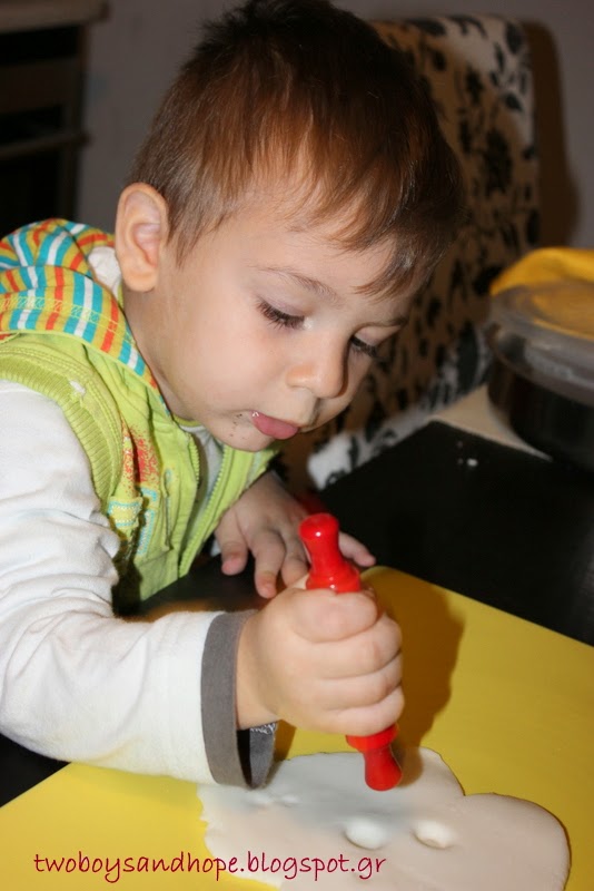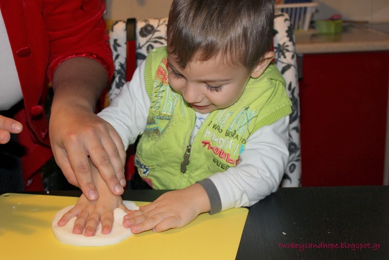 - Μπορούμε και να παίξουμε εννοείται κάνοντας αποτυπώματα… Ο Νικόλας τρελάθηκε με την άσπρη πλαστελίνη..χεχε