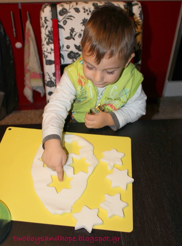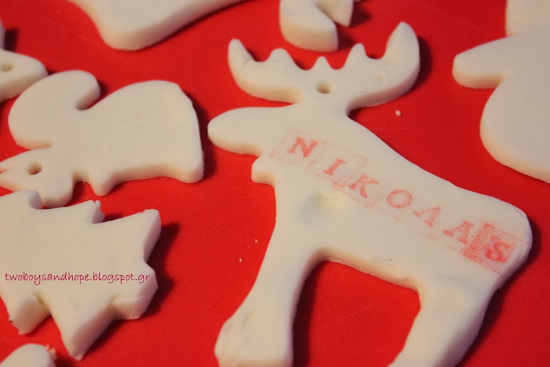 Ελπίδα τα φτιάξαμε χτες!!! Πανεύκολα και τόσο μαγική η ζύμη-πλαστελινη!! Τα παιδιά ενθουσιάστηκαν πολύ περισσότερο από οσα περίμενα. Τα αφήσαμε ολο το βραδυ να στεγνώσουν και σημερα οταν γυρισαν απο το σχολειο τους περάσαμε χρωματιστή κορδελίτσα και τα κρεμάσαμε κιόλας στο δεντράκι μας!! Η κόρη μου φύλαξε κιόλας ενα να πάει αύριο στο αμόρε της:)