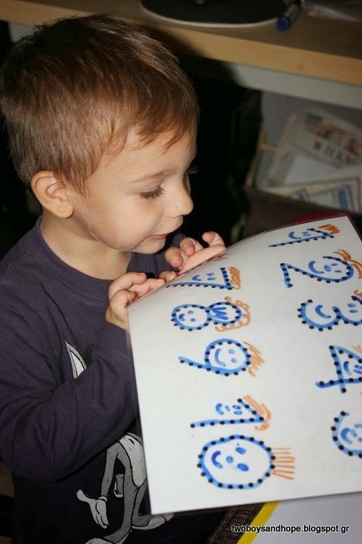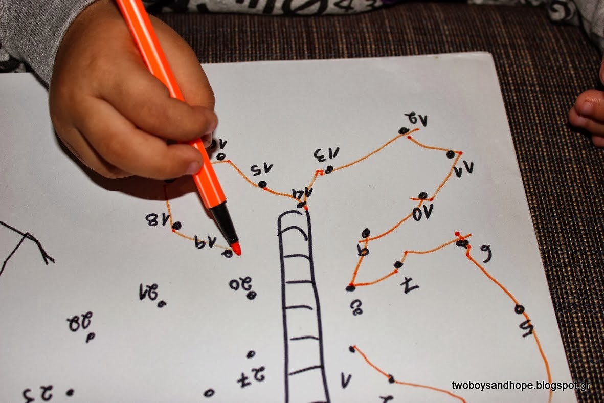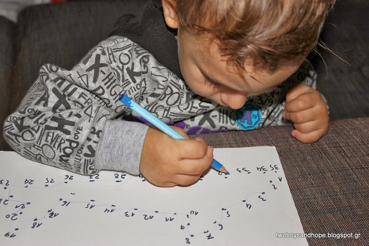 Αριθμοί με διακεκομμένες γραμμές ή με τελείες για να τις ενώσουμε. Χρωματιστοί ή μαύροι. και ο Νικόλας μπορεί να τους γράψει ξανά και ξανά…